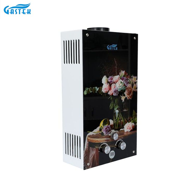 Urządzenia domowe 6L 10L 12L Typ przewodu spalinowego Montowany na ścianie Dostosowany panel szklany Bezzbiornikowy natychmiastowy gejzer gazowy do kąpieli pod prysznicem