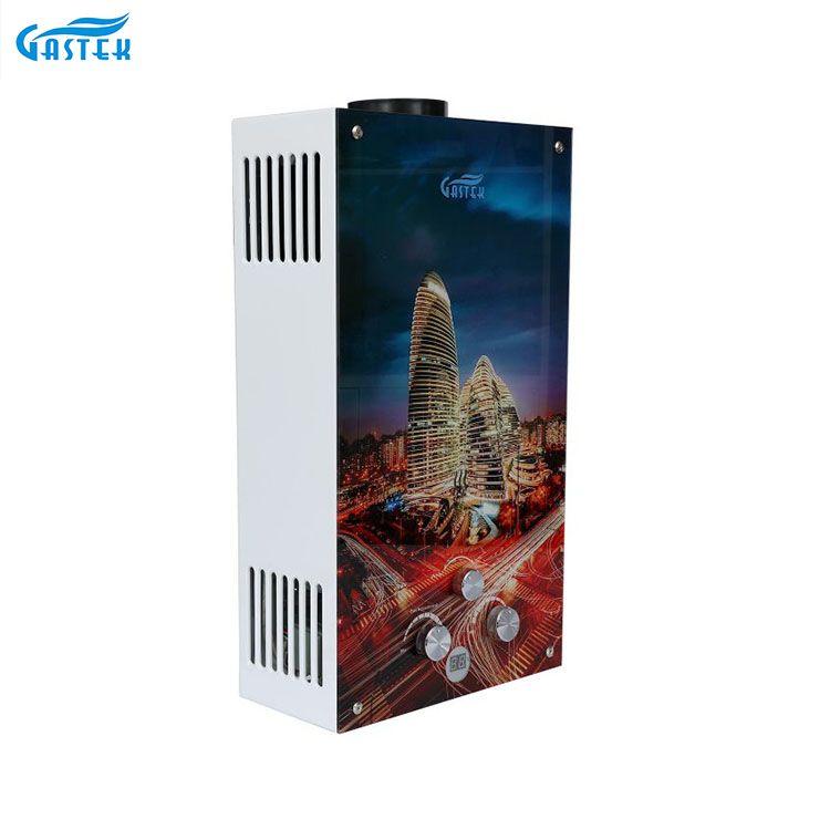 Urządzenia domowe 6L 10L 12L Typ przewodu spalinowego Montowany na ścianie Dostosowany panel szklany Bezzbiornikowy natychmiastowy gejzer gazowy do kąpieli pod prysznicem